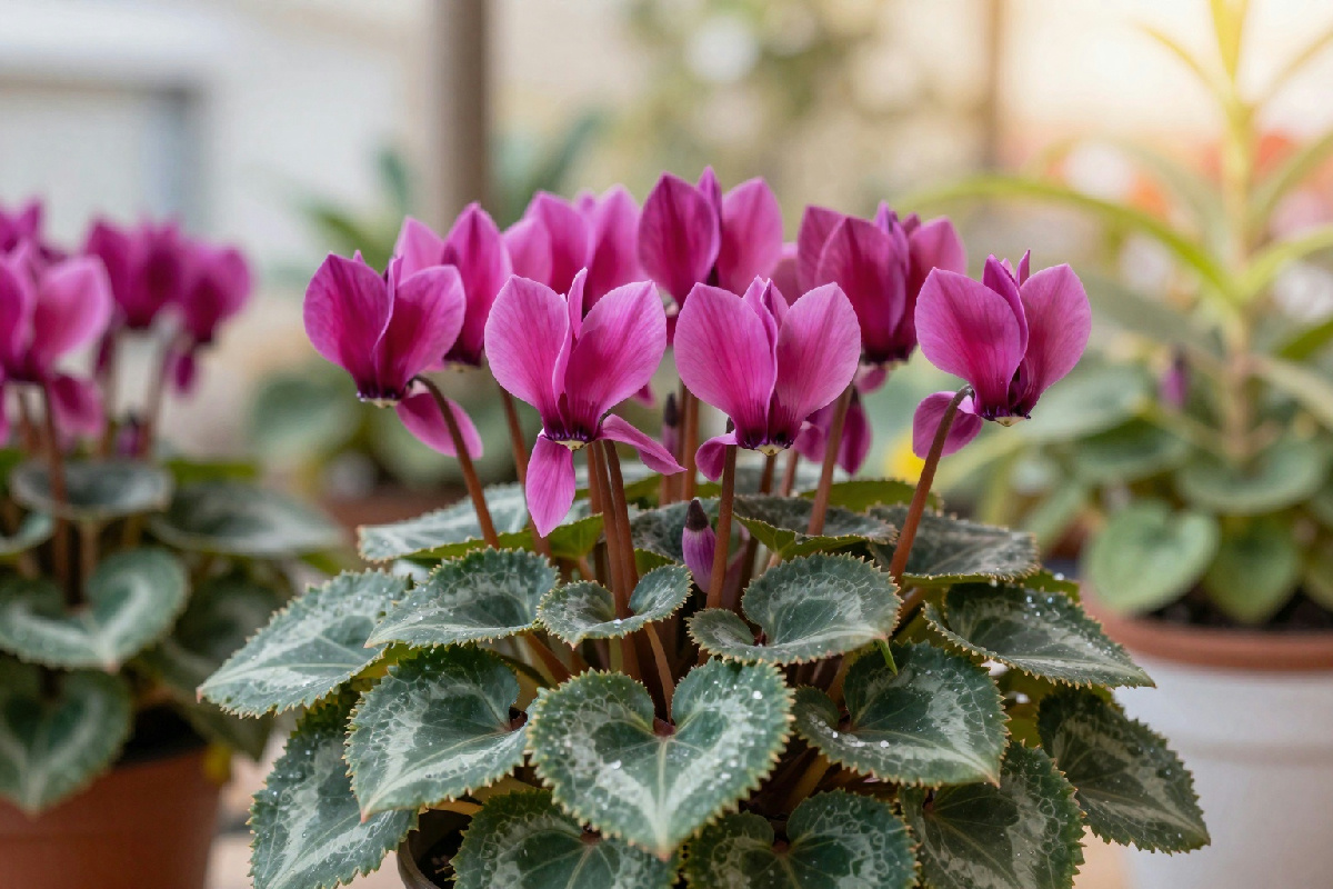 - Come posso sapere se il mio ciclamino ha bisogno d’acqua? Controlla il terreno: se è asciutto al tatto, è il momento di annaffiare.