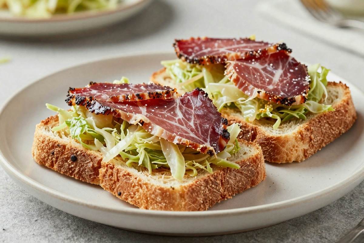 Il toast con cavolo cappuccio e carne salada è uno di quei piatti che riescono a colpire per la loro semplicità e, al contempo, per la ricchezza di sapori. Questo accostamento, che può sembrare insolito, è in realtà una combinazione perfetta per chi cerca qualcosa di diverso da mettere nel piatto per il pranzo. La carne salada, tipica del Trentino, si sposa magnificamente con la croccantezza del cavolo cappuccio e il formaggio Emmental, creando un pasto non solo buono, ma anche nutriente e soddisfacente. Ciò che rende questo piatto speciale è la sua capacità di unire ingredienti tradizionali in un modo nuovo e stimolante, capace di affascinare anche i palati più esigenti.
